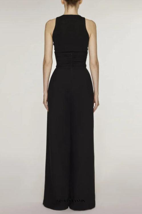 Dieses schwarze Set besteht aus einem ärmellosen Stretch-Tanktop und einer plissierten Hose und vereint Komfort mit raffiniertem Stil. Das Stretchmaterial sorgt für optimale Bewegungsfreiheit und eine schmeichelhafte Passform, während die plissierte Hose dem Outfit eine elegante Note verleiht. Ideal für Freizeit und Beruf – dieses Ensemble bietet Vielseitigkeit und mühelose Eleganz.
