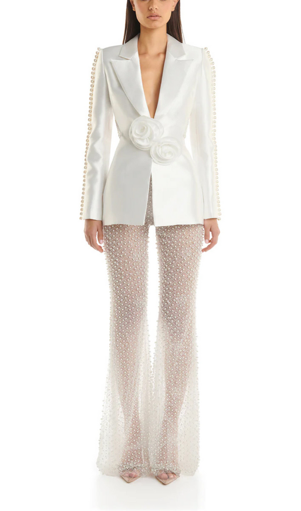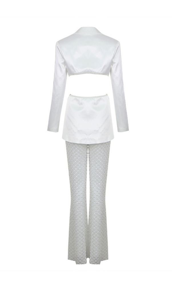 Sehen Sie in diesem zweiteiligen Set aus engen, weißen Hollow-Hosen schneidig und mutig aus. Machen Sie ein tapferes Gesicht und seien Sie bereit für jede Herausforderung, die auf Sie zukommt! Zeigen Sie Ihren mutigen Stil und seien Sie eine Inspiration für andere.