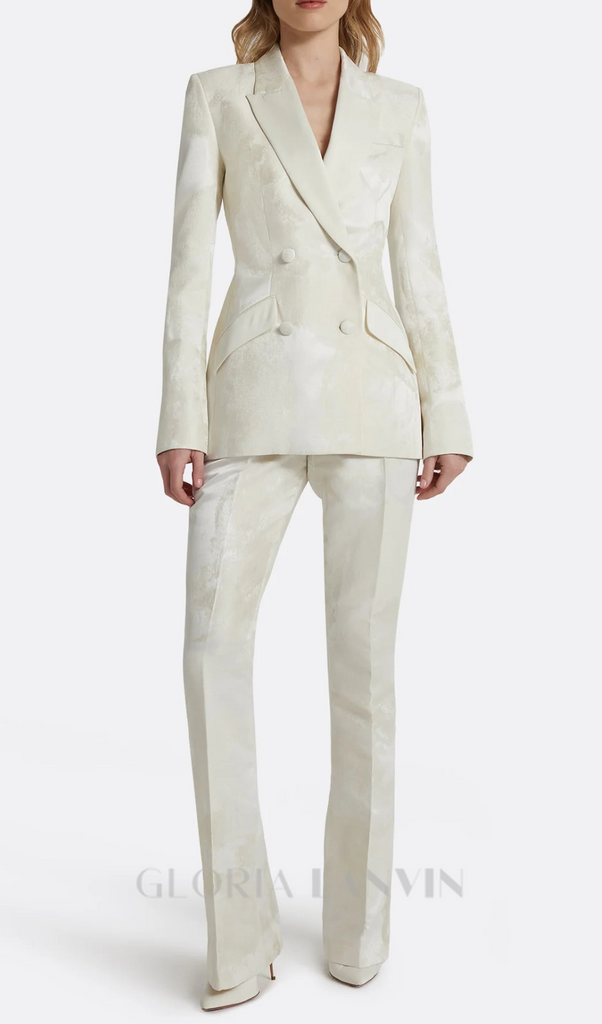 Jacquard-Doppelreiher-Blazeranzug in Elfenbein