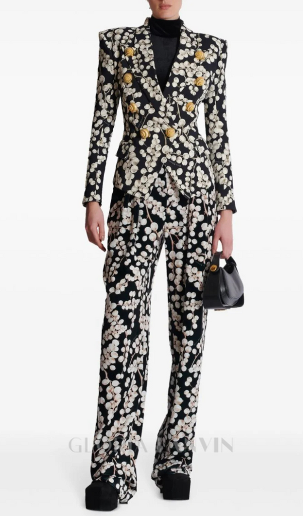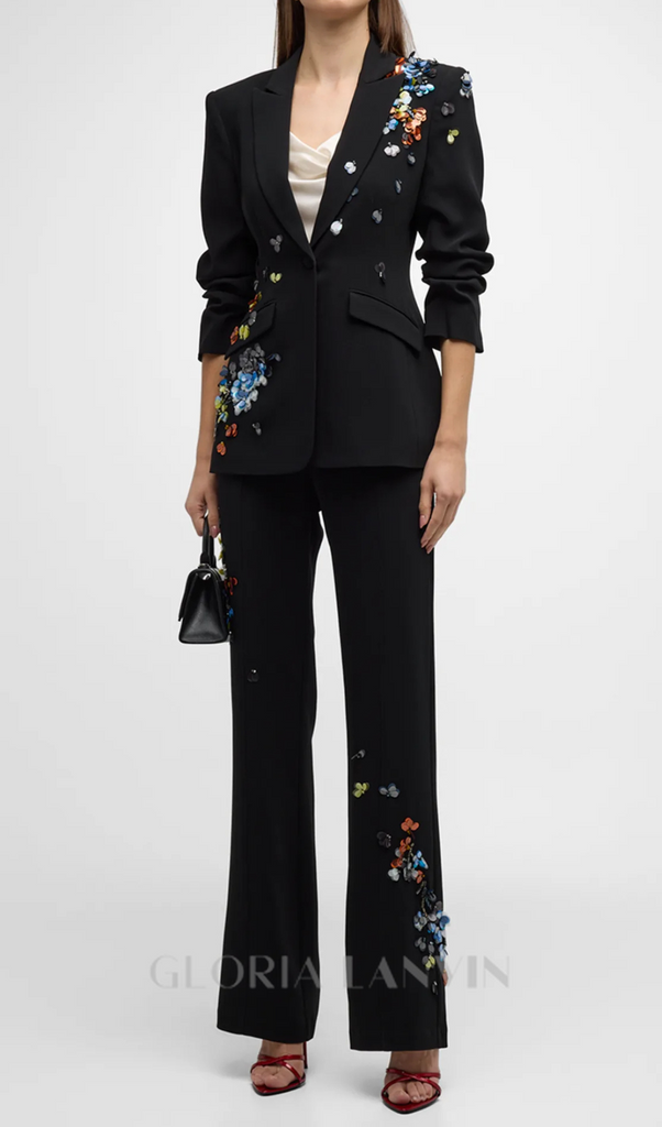 WEISSER ZWEIREIHIGER ANZUG MIT DIMENSIONALEN BLUMEN