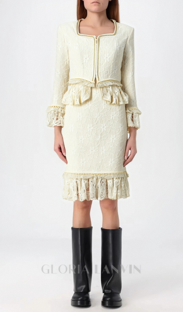 Bodycon-Rockanzug mit Spitzenoberteil in Elfenbein