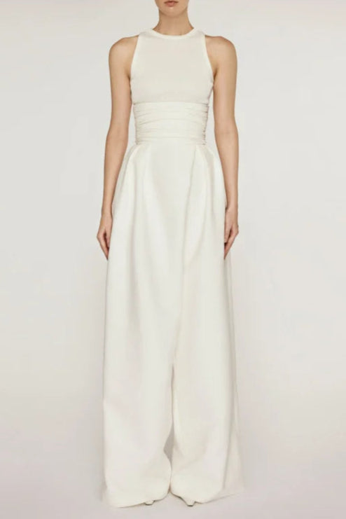 Ärmelloses Stretch-Tanktop und plissierte Hose in Weiß