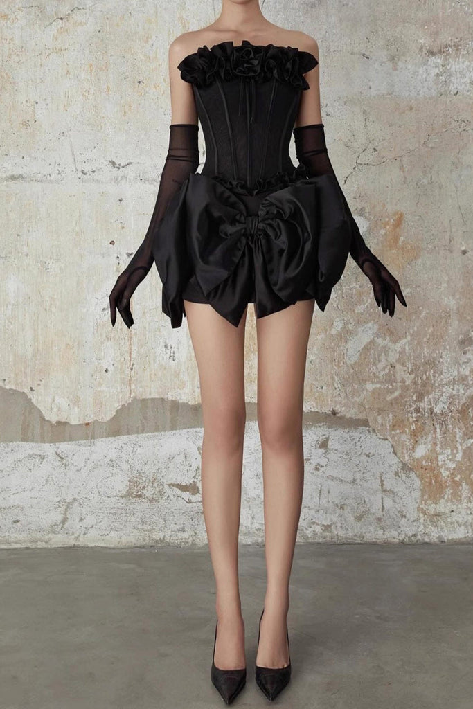 Victoria Minikleid-Set mit Cut-Outs und Schleife in Schwarz