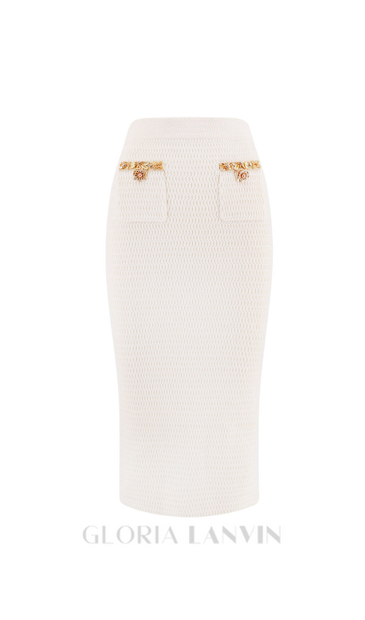 cremefarbener Midirock aus Lurex-Strick