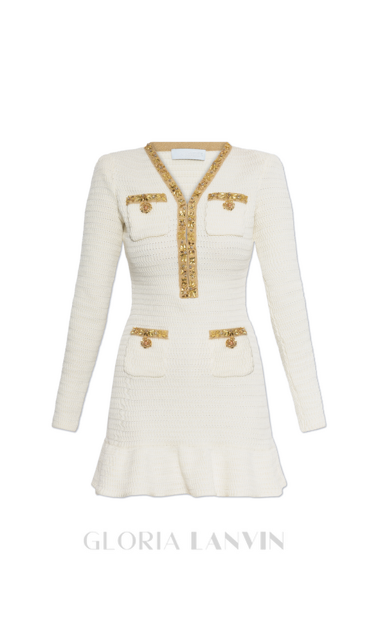 cremefarbenes Minikleid aus Lurexstrick