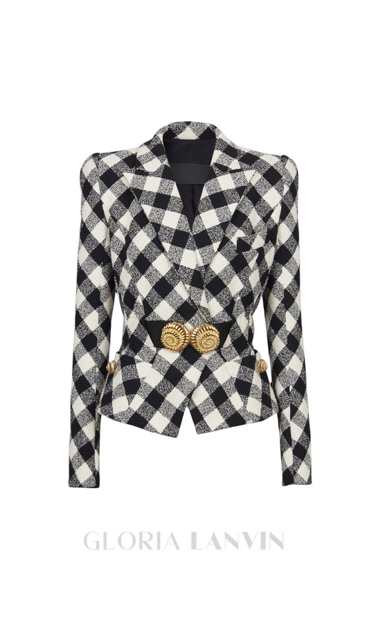Gingham-Tweedjacke mit Gürtel und zwei Snail-Knöpfen