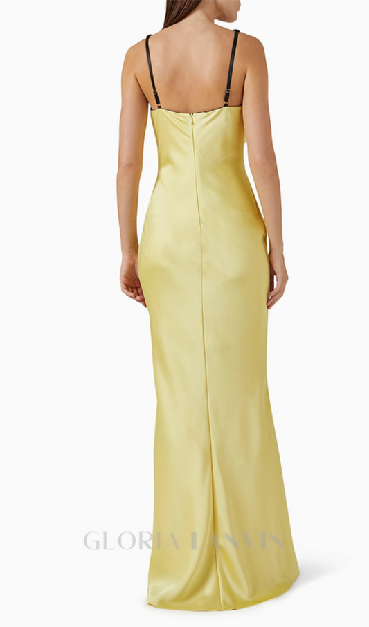 Samt-Maxikleid mit Bustier in Schwarz und Gelb
