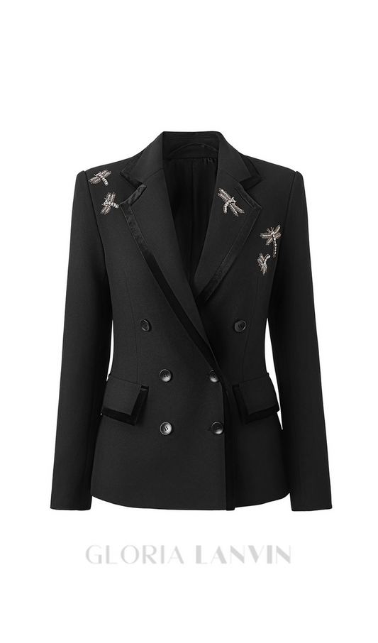 Blazer mit Libellenstickerei und Nagelbohrer-Motiv in Schwarz