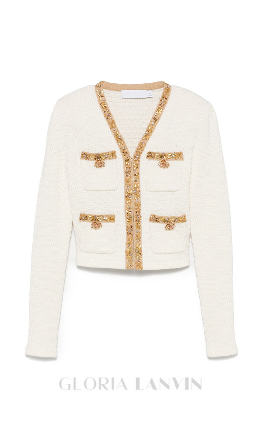 cremefarbene Strickjacke mit Lurex-Beschichtung