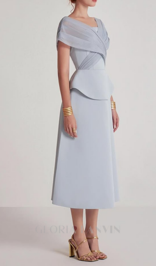 Hellgraues Midikleid mit Mesh-Patchwork-Muster