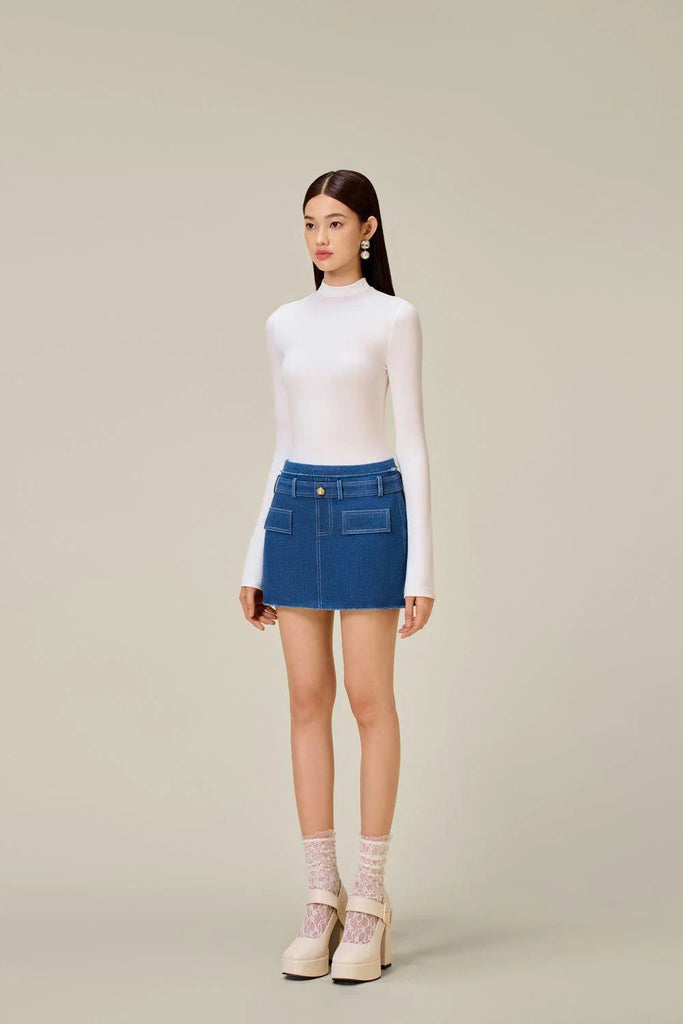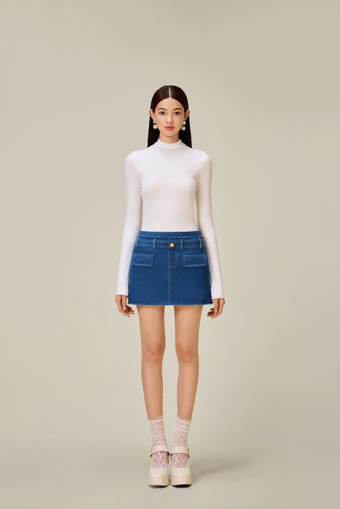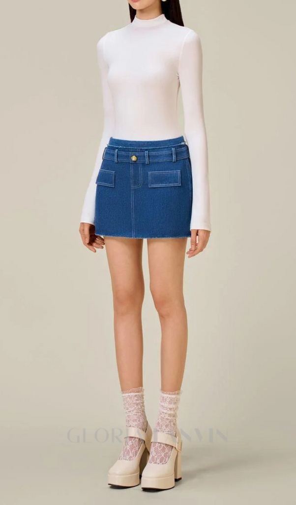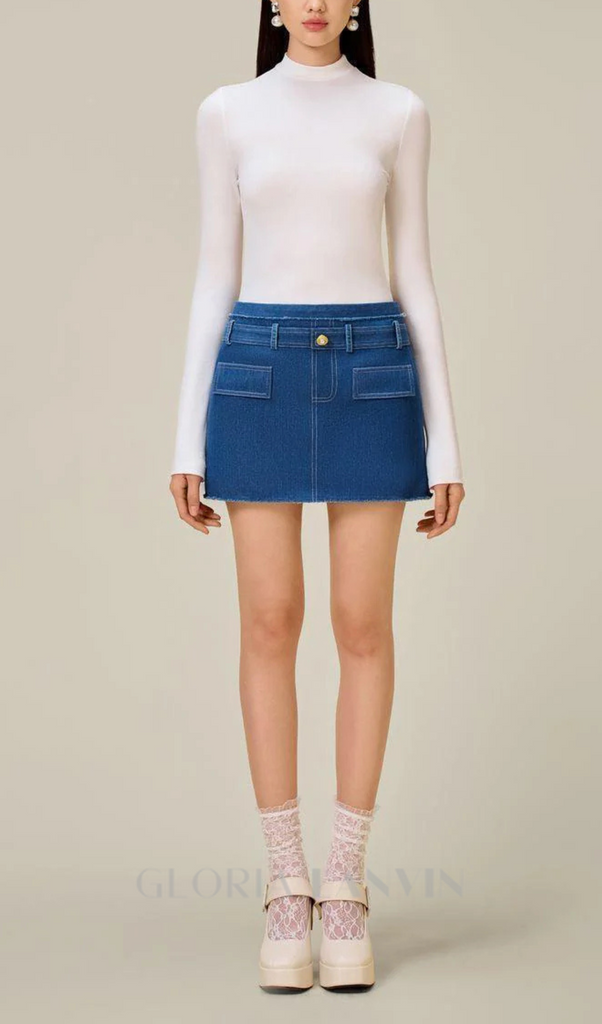 Dieser meisterhaft geschnittene Tweed-Minirock verleiht jedem Outfit eine elegante Note. Mit seiner klassischen blauen Farbe und der hochwertigen Verarbeitung ist er eine vielseitige Ergänzung Ihrer Garderobe. Sein zeitloses Design und die edlen Materialien machen ihn zu einem zuverlässigen Begleiter für jeden Anlass.