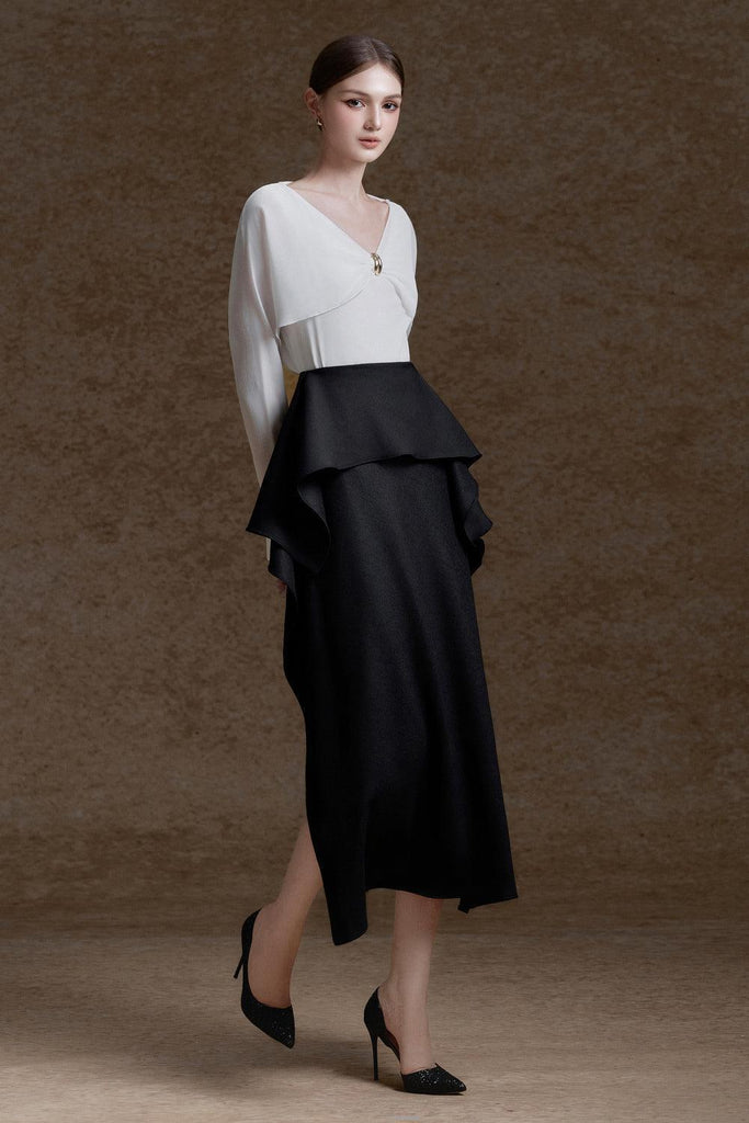 Mit geradem Schnitt und verspielten Rüschen verleiht dieser Rock Ihrer Garderobe eine feminine Note. Gefertigt aus hochwertigen Materialien, ist er bequem und vielseitig. Perfekt für jeden Anlass, wertet dieser Rock Ihren Stil mit seinem eleganten Design und der makellosen Verarbeitung auf.