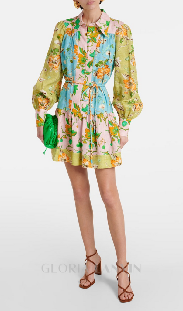 DONNA LEINENHEMDENKLEID MIT PRINT UND FARBABSETTEN