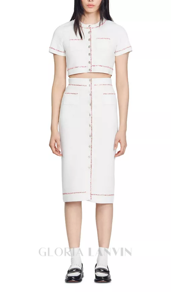 Elisa Strick-Midi-Bleistiftrock in Ecru