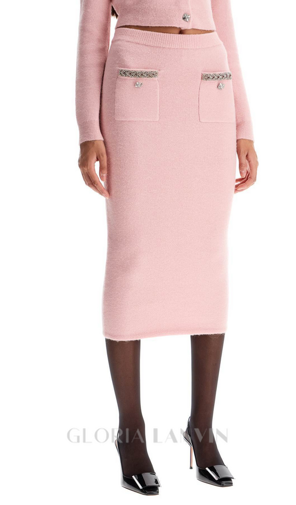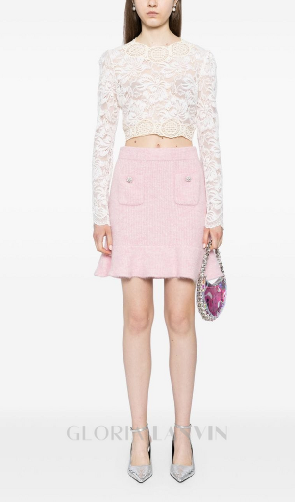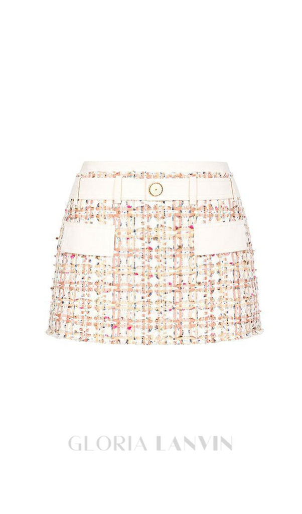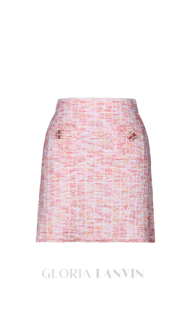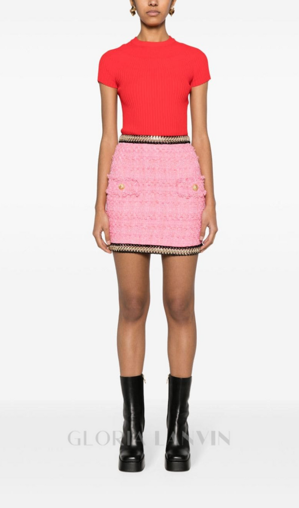 Tweed-Minirock mit Kettenverzierungen in Rosa