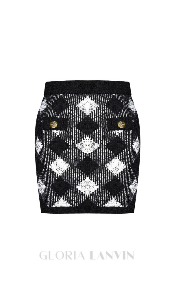 Schwarzer Strickminirock mit Schmuckknöpfen