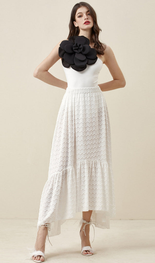 Übertriebener Badeanzug mit 3D-Blumenmuster in Weiß