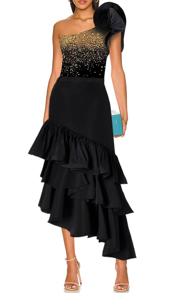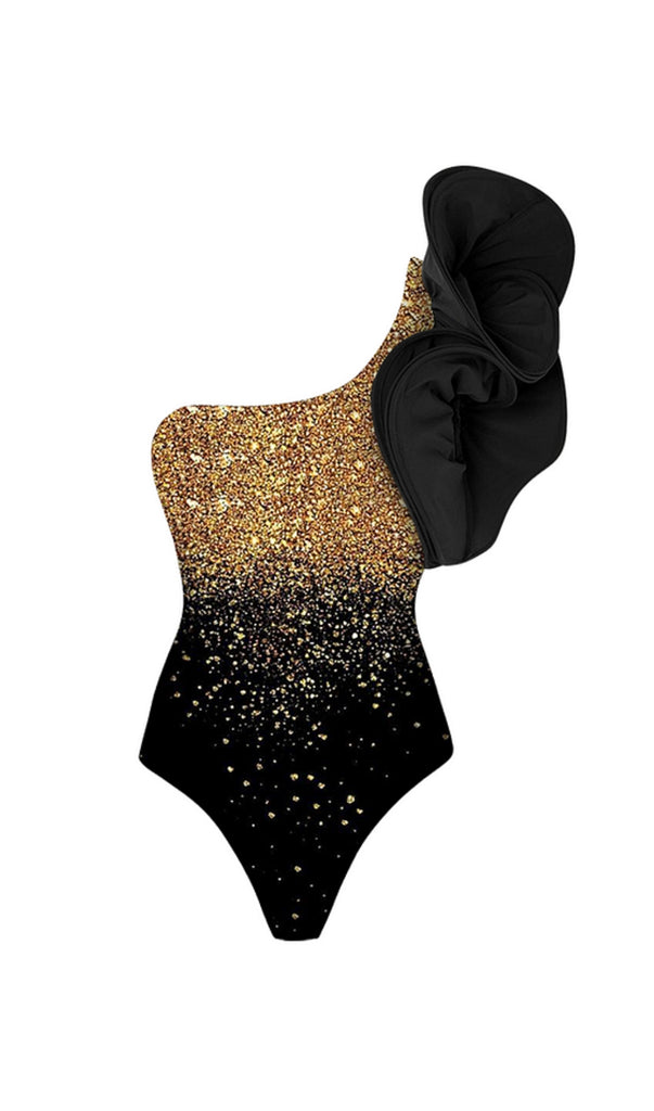 Einteiliger Badeanzug mit Rüschen, glänzendem Print und One-Shoulder-Träger und Rock