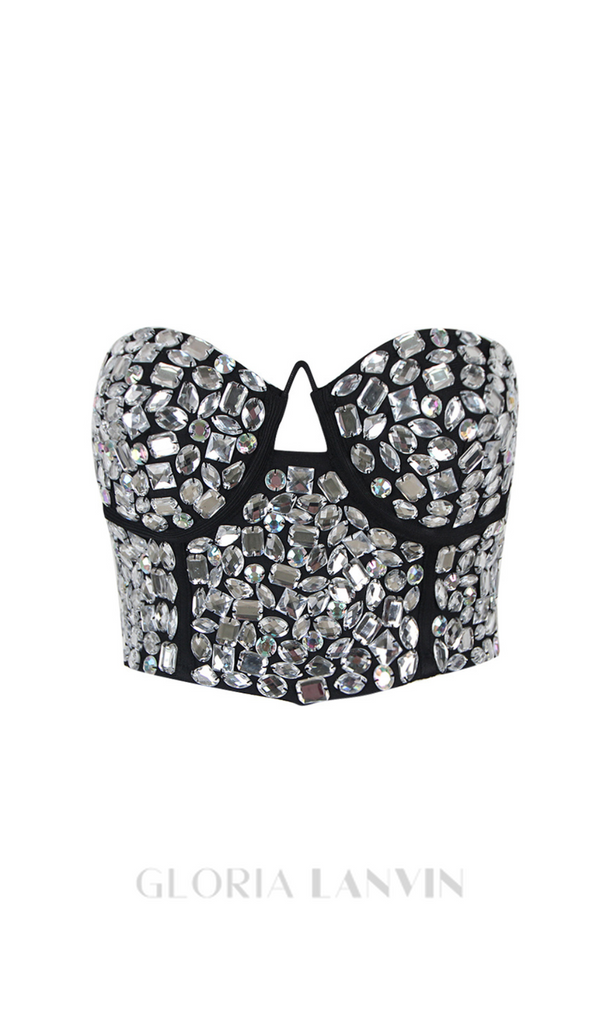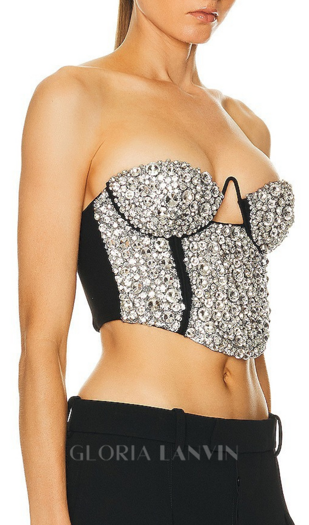 Dieses einzigartige Oberteil ist mit Kristallstickereien verziert, die für einen Hauch von Glamour sorgen. Perfekt für einen Abend oder um einen lässigen Look aufzupeppen. (Sorgen Sie für Aufsehen mit diesem glitzernden Bustier, das perfekt für Partys ist und Ihren Stil aufwertet.)