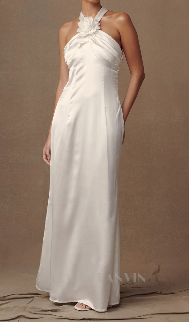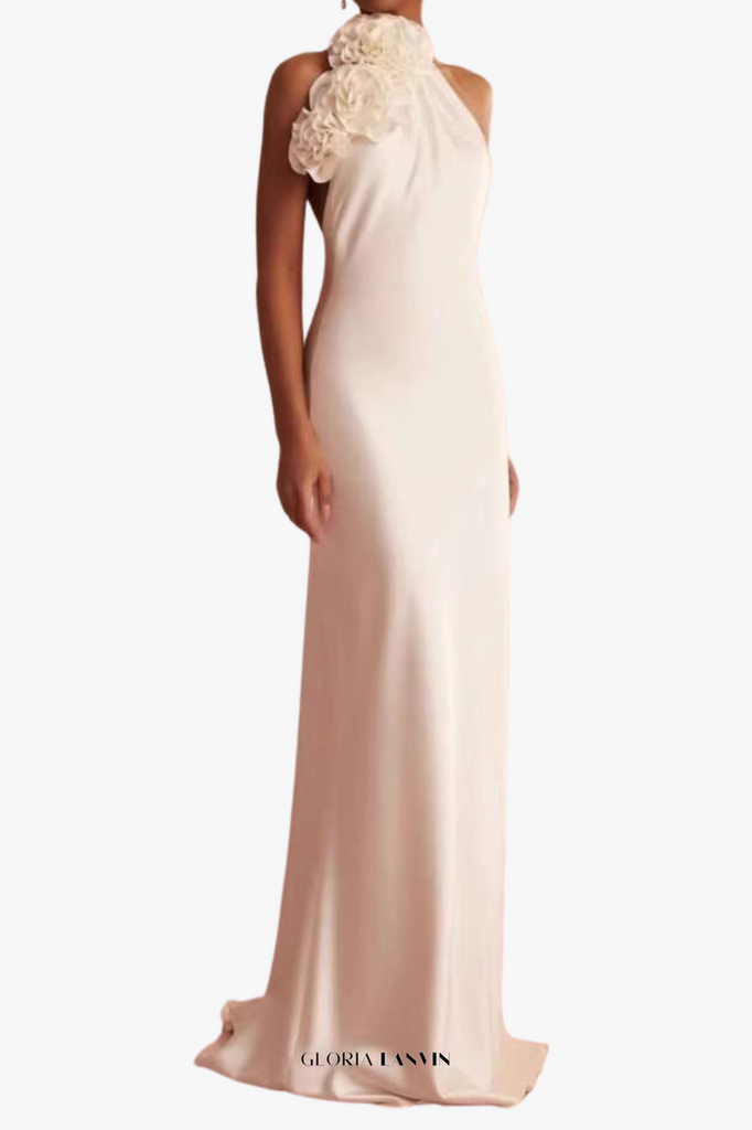 Sherry Maxikleid mit Neckholder und floralen Applikationen in Weiß
