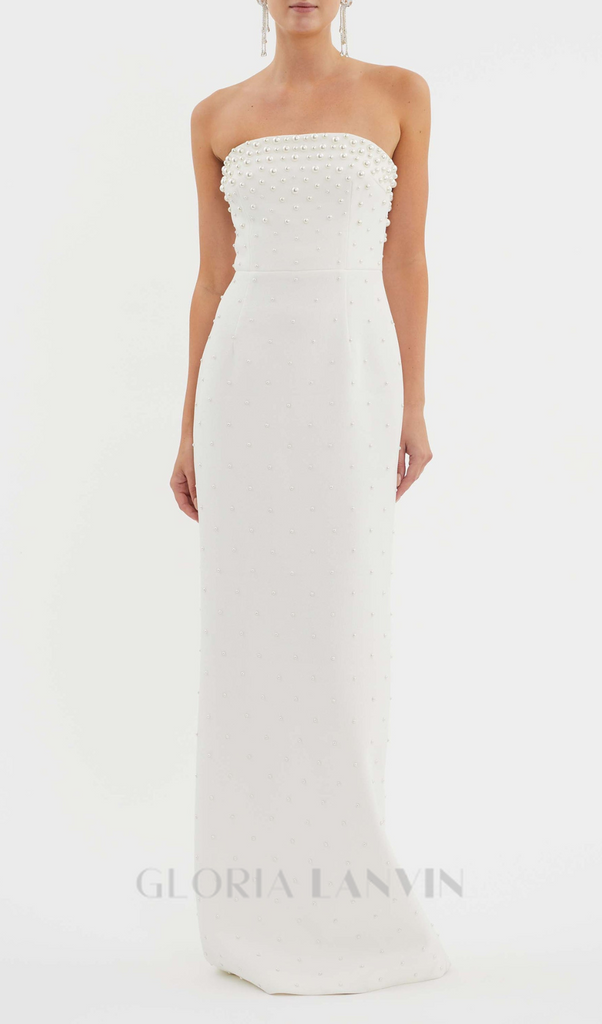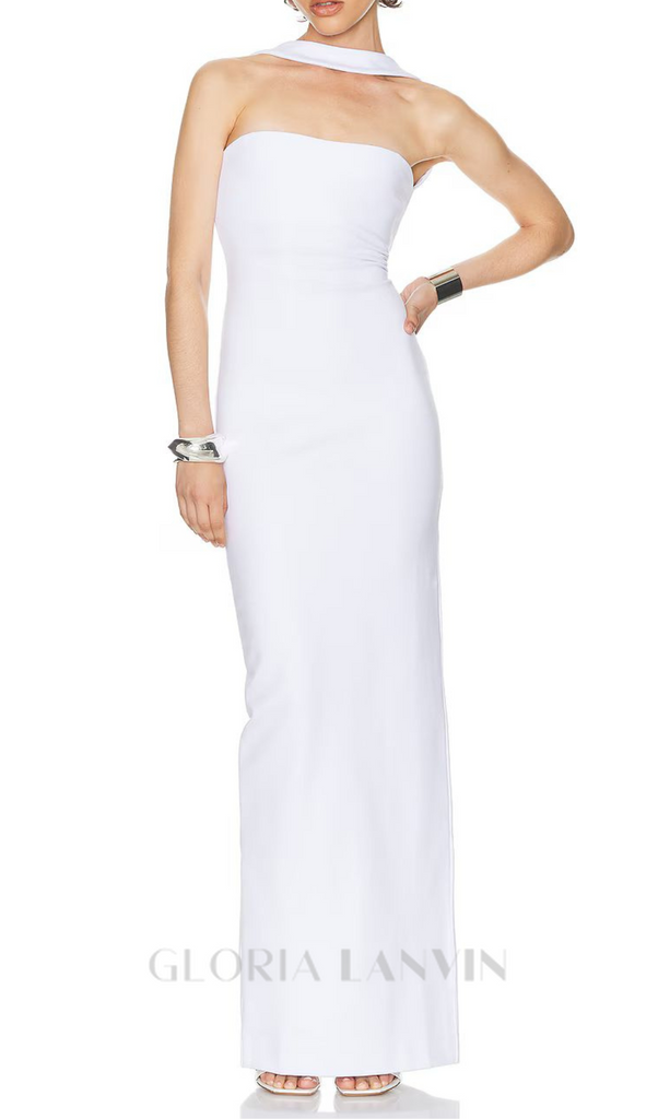 schulterfreies, rückenfreies, schmal geschnittenes Maxikleid in Weiß