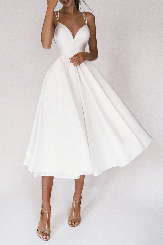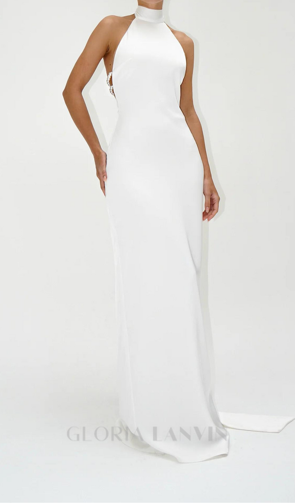 RÜCKENFREIES KLEID MIT HALTER UND AUSSCHNITT IN WEISS