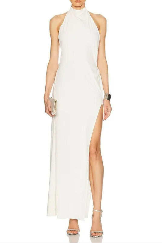 Neckholder-Maxikleid ohne Träger und Schlitz in Elfenbein