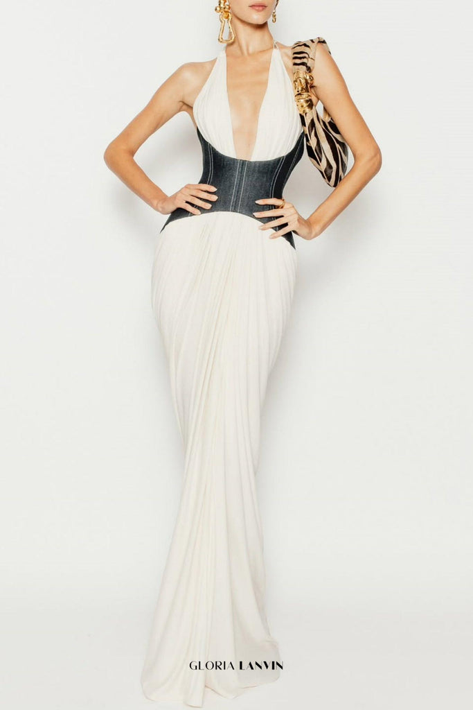 Werten Sie Ihre Garderobe mit unserem Daryle Halter-Maxikleid aus Denim mit Korsett-Details und Raffungen auf. Die raffinierte Silhouette vereint den lässigen Charme von Denim mit eleganter Korsett-Formgebung und kunstvollen Raffungen. Der Neckholder-Ausschnitt betont Ihr Dekolleté, während die Maxilänge eine anmutige, gestreckte Silhouette zaubert. Perfekt für Anlässe, die einen raffinierten Stil mit modernem Touch erfordern.