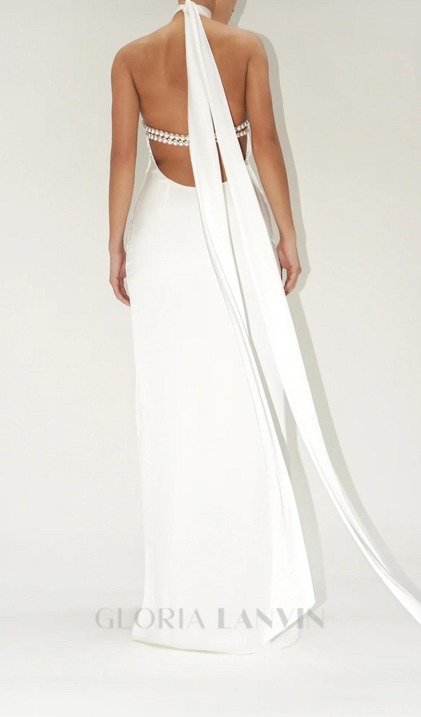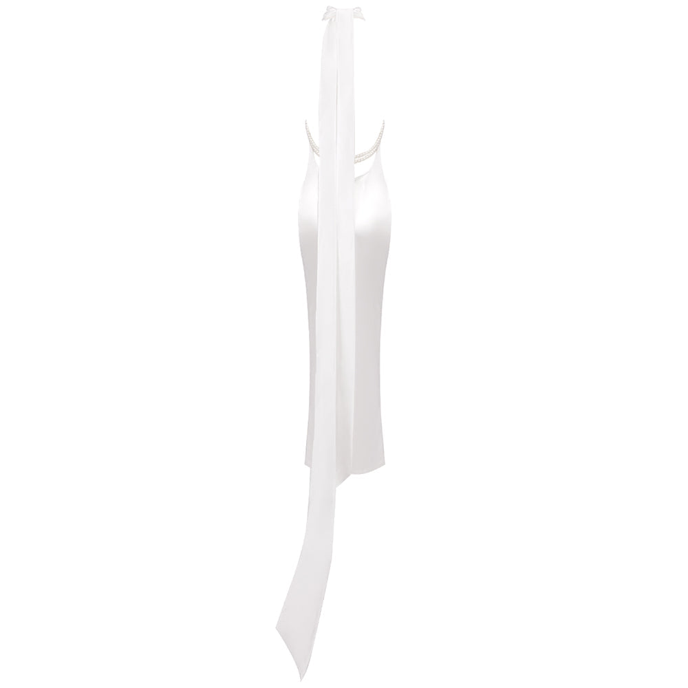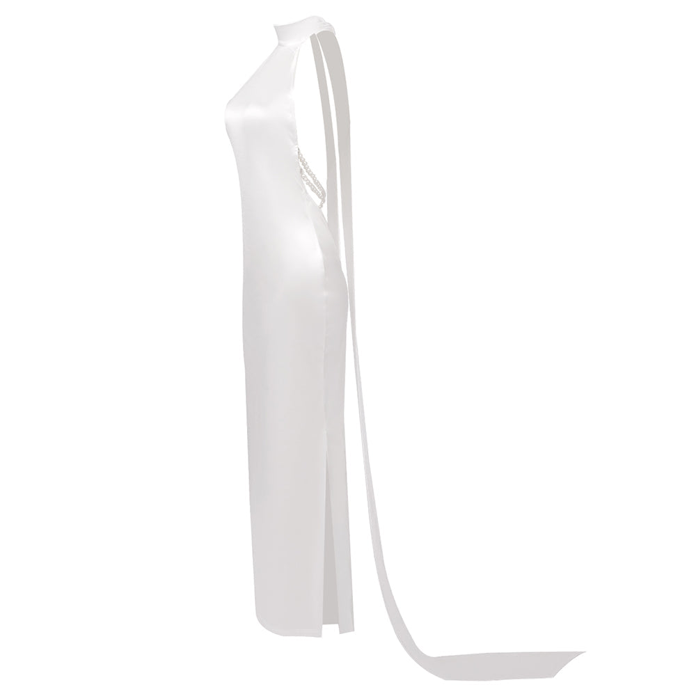 Mit seinem eleganten Satin, den auffälligen Perlenverzierungen und dem einzigartigen rückenfreien Design zieht dieses Kleid garantiert alle Blicke auf sich. Der mitgelieferte Satingürtel schmeichelt der Figur. Perfekt für einen schicken und unvergesslichen Anlass.