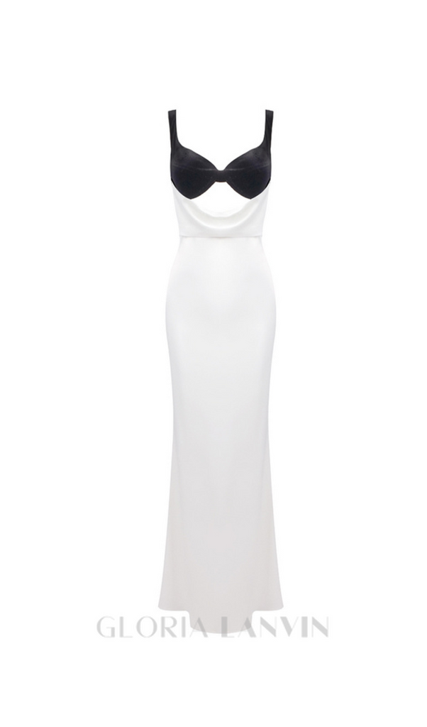 Verleihen Sie Ihrem Stil mit unserem eleganten Samt-Maxikleid in Schwarz-Weiß das gewisse Etwas. Das Kleid aus luxuriösem Samt besticht durch ein figurbetontes Bustier-Oberteil und einen fließenden Maxirock. Perfekt für jeden besonderen Anlass – in diesem Kleid fühlen Sie sich selbstbewusst und stilvoll.