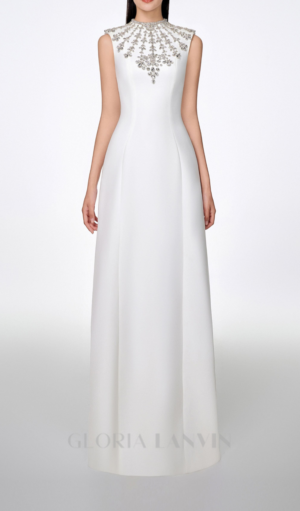 WEISSES ÄRMELLOSES BODYCON-MAXIKLEID MIT STEINVERZIERUNG