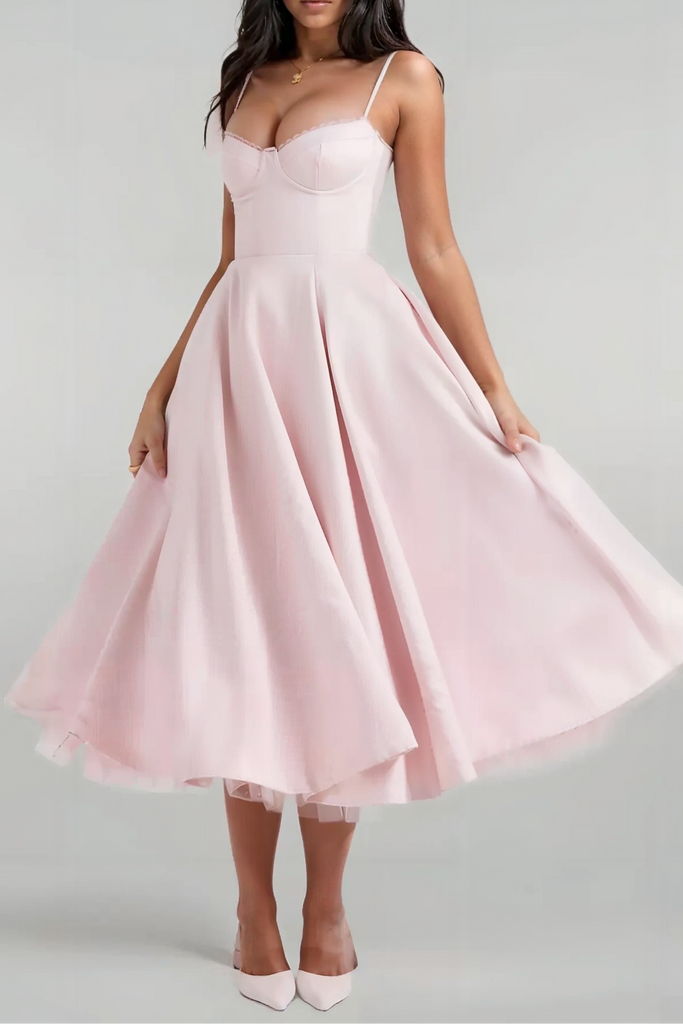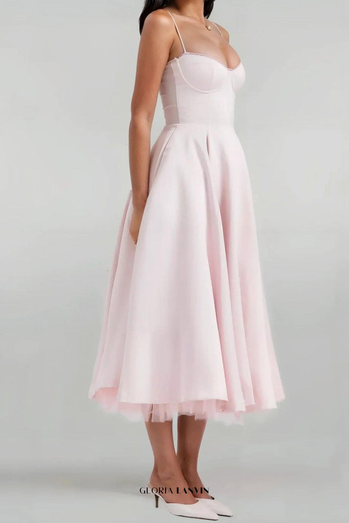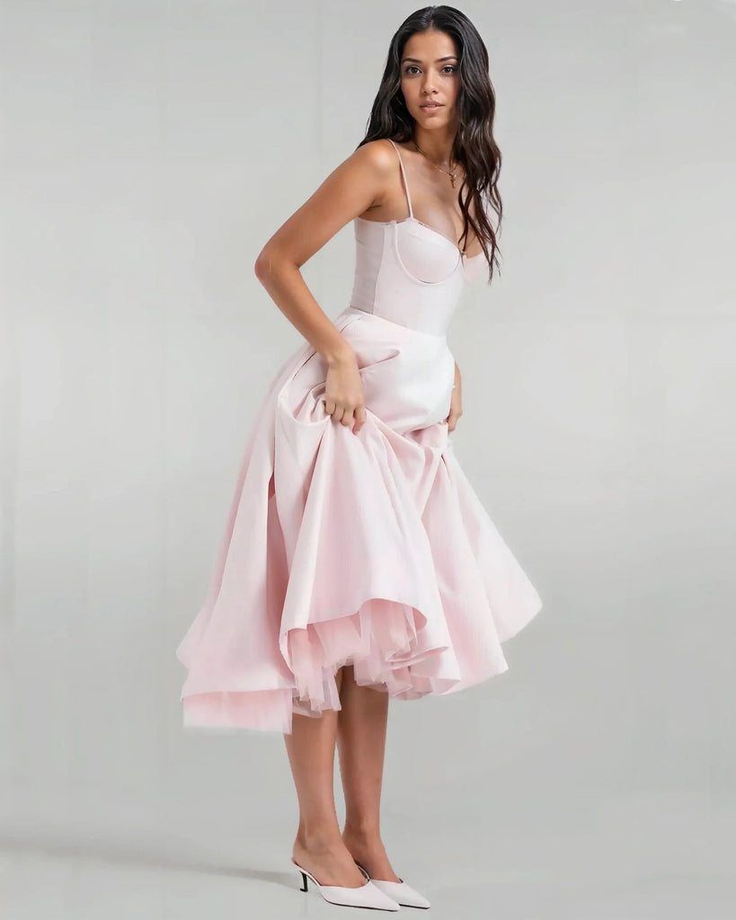 Wir präsentieren Ihnen dieses Kleid – eine faszinierende Verschmelzung von Vintage-Silhouette und modernem Stil, entworfen für die elegante, moderne Frau. Das Kleid besticht durch zarte, verstellbare Spaghettiträger und einen herzförmigen Ausschnitt mit Spitze. Das strukturierte Bustier wird durch ein eng anliegendes Korsett-Design zusätzlich betont. Gefertigt aus luxuriösem Satin, besticht das Kleid durch seine glatte, glänzende Oberfläche, die sich wunderschön über die Lagen aus weichem Tüll legt. Der voluminöse Rock verleiht der altmodischen Geldästhetik einen Hauch von Verspieltheit.