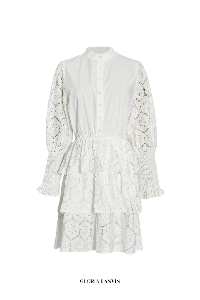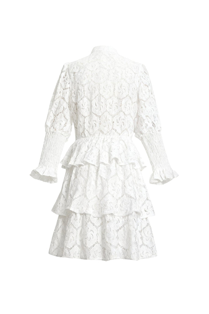The Vanessa Long Sleeves Layered Lace Mini Dress in white combines delicate femininity with contemporary sophistication. Crafted from intricate layered lace, this piece features elegant long sleeves that provide refined coverage while maintaining an airy aesthetic. The mini silhouette creates a flattering, modern proportion, making it ideal for elevated casual occasions or evening events. The white colorway ensures versatility, pairing effortlessly with your existing wardrobe. Designed for those who appreciate quality construction and timeless style, this dress transitions seamlessly from season to season.