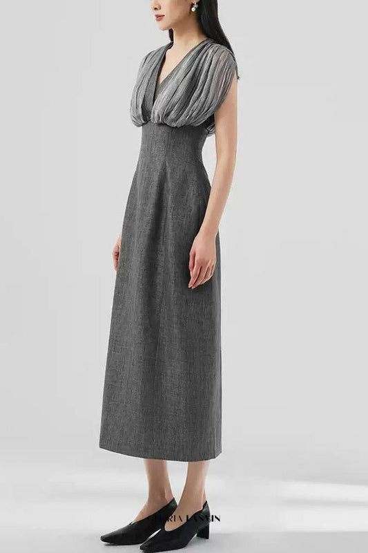 Robe tube midi en maille froncée contrastée au niveau de la poitrine