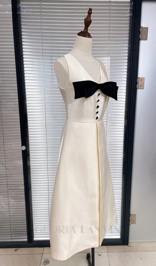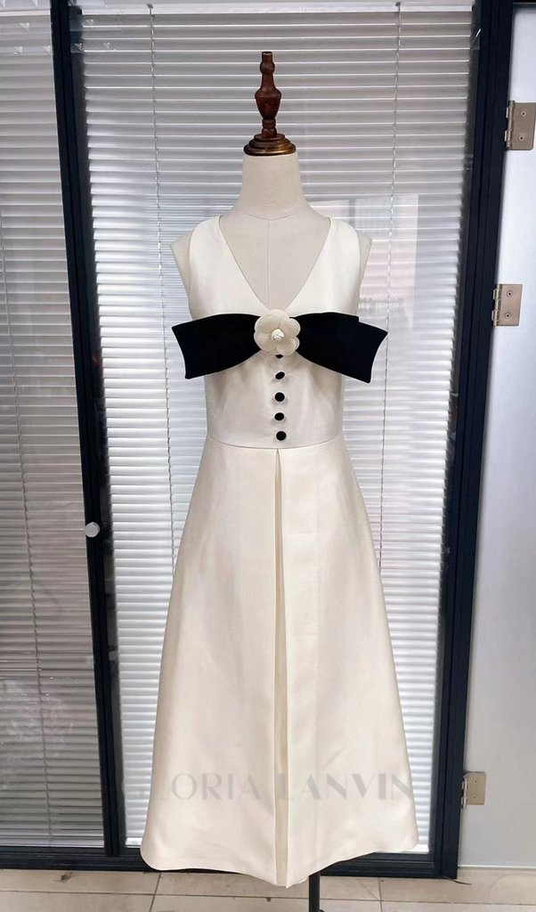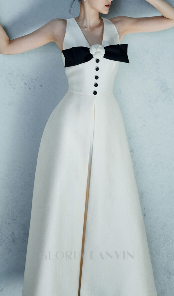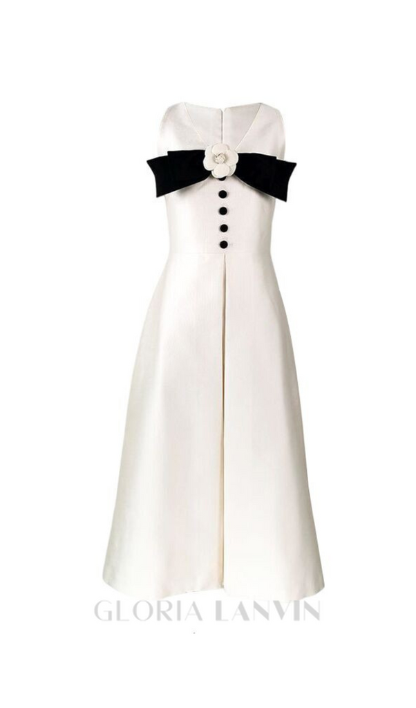 Robe midi blanche ornée de fleurs et d'un nœud – Gloria Lanvin