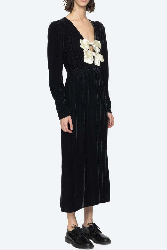 Elevate your evening look with this stunning Wallis black velvet midi dress. The sophisticated V-neckline draws attention upward, while the delicate bow cutout detail adds a touch of playful elegance to the bodice. Crafted from luxurious velvet fabric, this dress drapes beautifully and moves with you throughout the night. The midi length strikes the perfect balance between modest and chic, making it ideal for cocktail events, dinners, or special occasions. You'll feel confident and graceful in this timeless piece that effortlessly transitions from season to season.