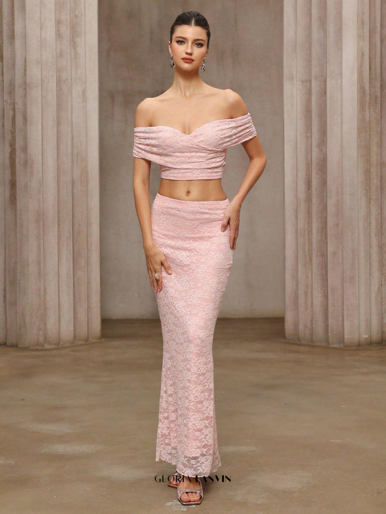 Sublimez votre garde-robe avec l'ensemble Alice, composé d'un haut et d'une jupe en dentelle rose à épaules dénudées. Conçu avec expertise, il allie délicate féminité et élégance moderne. La dentelle rose raffinée apporte une texture subtile, tandis que la coupe épaules dénudées met en valeur votre décolleté avec grâce et modernité. Cet ensemble coordonné offre une coupe flatteuse qui sublime votre silhouette, idéal pour les occasions spéciales ou les événements chics en journée. Alliant confort et style, l'ensemble Alice vous assure une allure soignée et élégante.