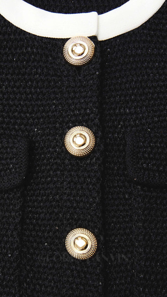 Des lignes épurées et une palette de couleurs contrastées confèrent à cette robe une allure raffinée, tandis que ses boutons dorés et sa silhouette sculptée lui donnent un côté festif. Portez-la avec des plateformes pour une soirée.
