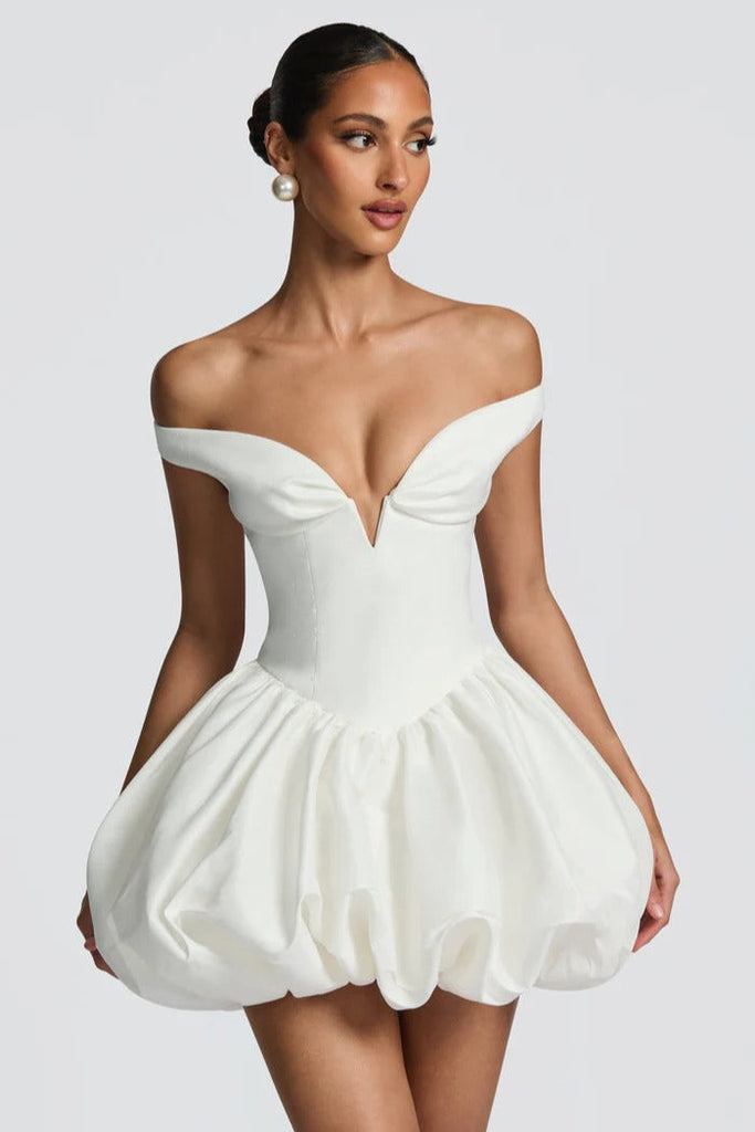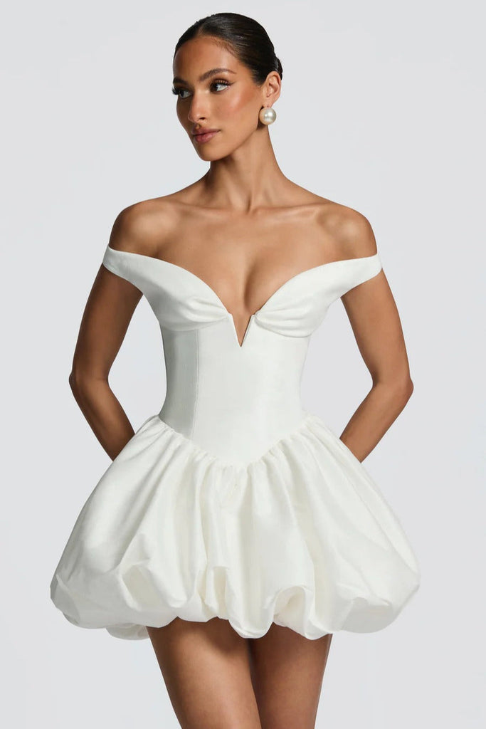 Cette mini-robe ivoire, ornée d'un délicat motif de marguerites, présente un décolleté en V et une coupe bustier, offrant une silhouette chic et élégante. Ses manches bouffantes ajoutent du volume et une touche romantique, sublimant sa féminité. Parfaite pour les beaux jours, sa matière légère garantit un confort optimal tout en assurant une allure raffinée et stylée. Idéale pour une élégance discrète lors de sorties décontractées ou d'événements spéciaux.