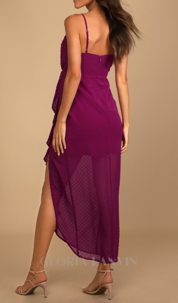 Cette magnifique robe arbore un imprimé à pois ludique et d'élégants détails à volants, ce qui en fait la pièce idéale pour compléter votre garde-robe. Sa longueur midi la rend polyvalente et facile à accessoiriser pour toutes les occasions, des plus décontractées aux plus habillées. Vous vous sentirez élégante et rayonnante dans cette robe.
