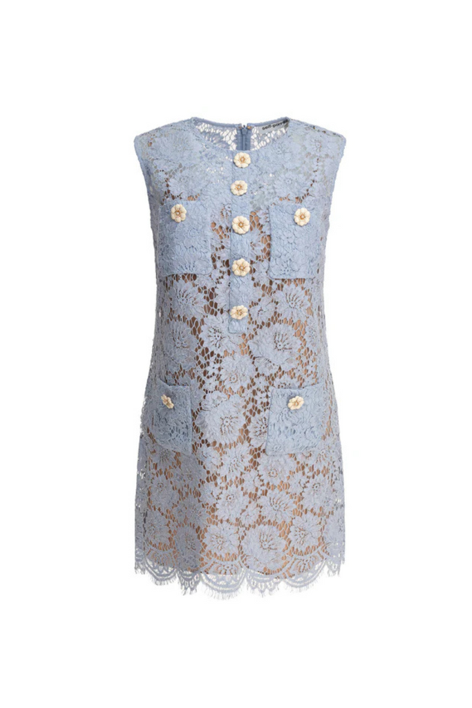Confectionnée en dentelle ajourée Eunice délicate, cette robe crayon bleue respire l'élégance et la féminité. Parfaite pour toutes les occasions, sa coupe mini met en valeur vos jambes tandis que la dentelle raffinée apporte une touche de sophistication. Sublimez votre style avec cette pièce intemporelle.