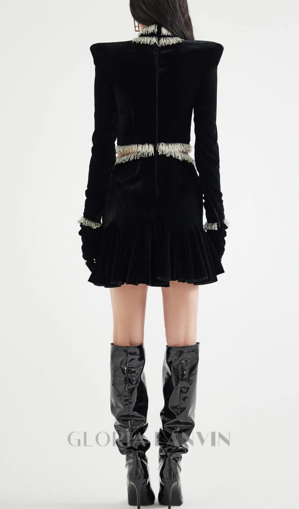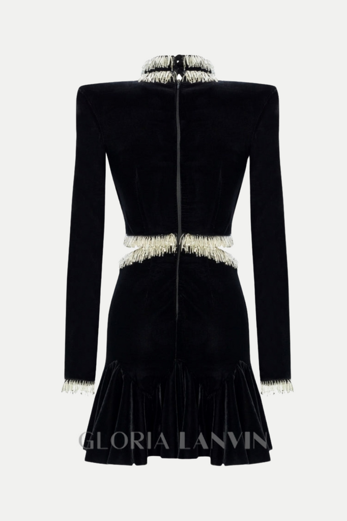 Découvrez la luxueuse mini-robe Ishika en velours doux et ornée de perles. Confectionnée avec des perles délicates et un velours somptueux, cette robe incarne l'élégance et le raffinement, et deviendra la pièce maîtresse de votre tenue pour toute occasion spéciale. Affirmez votre style et marquez les esprits avec cette robe exclusive.