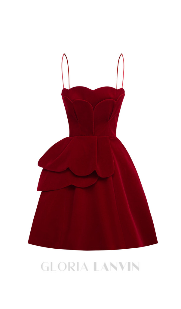 MINI-ROBE EN VELOURS À BORDS FRUCHÉS ROUGE RUBIS – Gloria Lanvin