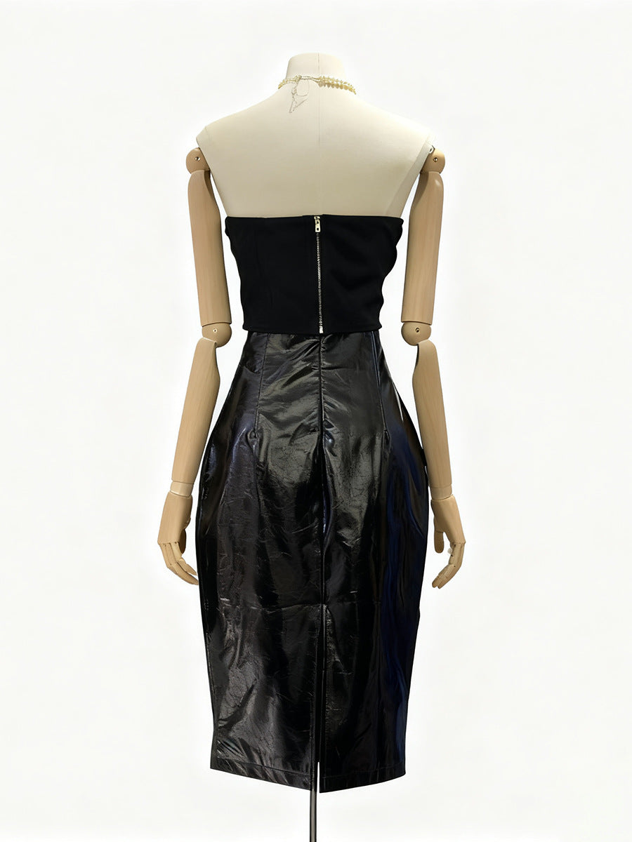 Sublimez votre tenue de soirée avec cet ensemble deux pièces remarquable, composé d'un crop top sans manches et bustier assorti à une mini-jupe. La silhouette structurée et le design minimaliste créent un look sophistiqué et tendance, idéal pour les soirées ou les occasions spéciales. La coupe courte et l'encolure bustier offrent une esthétique moderne et affirmée, qui se porte aussi bien seule qu'assortie à d'autres pièces. Confectionné en noir classique, cet ensemble polyvalent s'adapte à toutes les occasions, des cocktails aux tenues décontractées chics.
