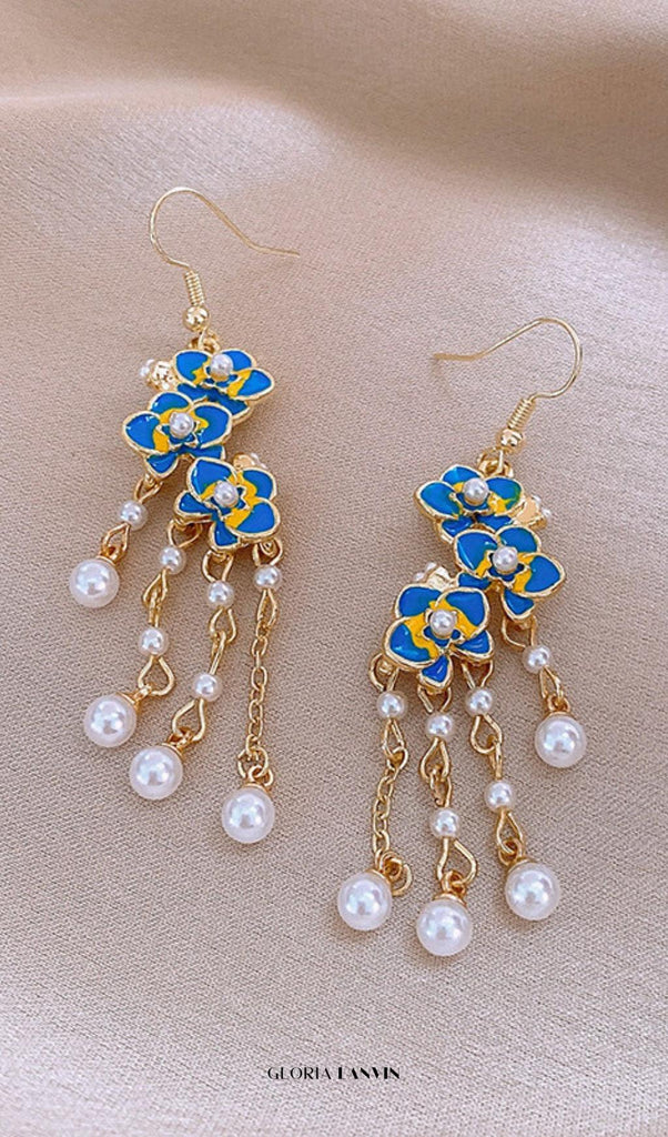 Boucles d'oreilles Dave Blue Flower Pearl – Gloria Lanvin