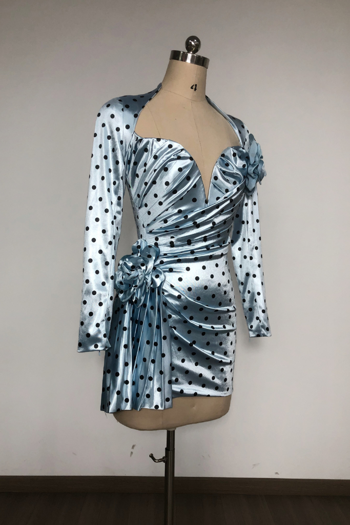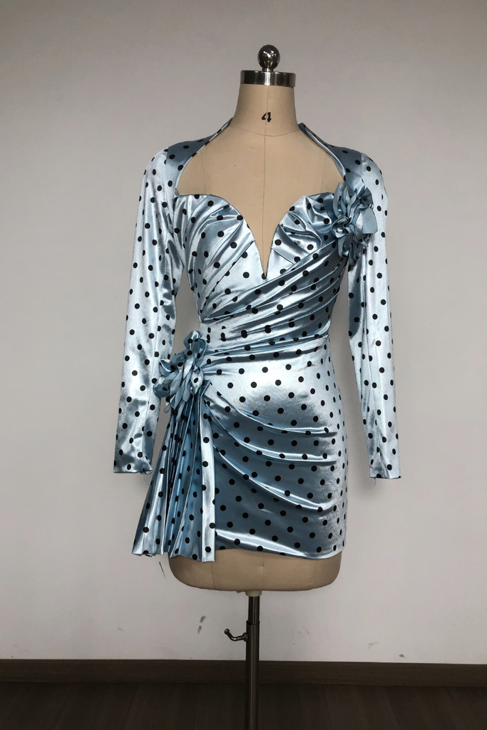 Robe courte en satin à pois bleus Jenny