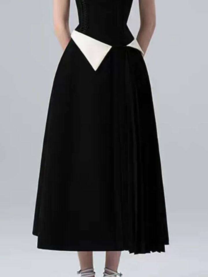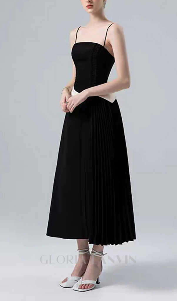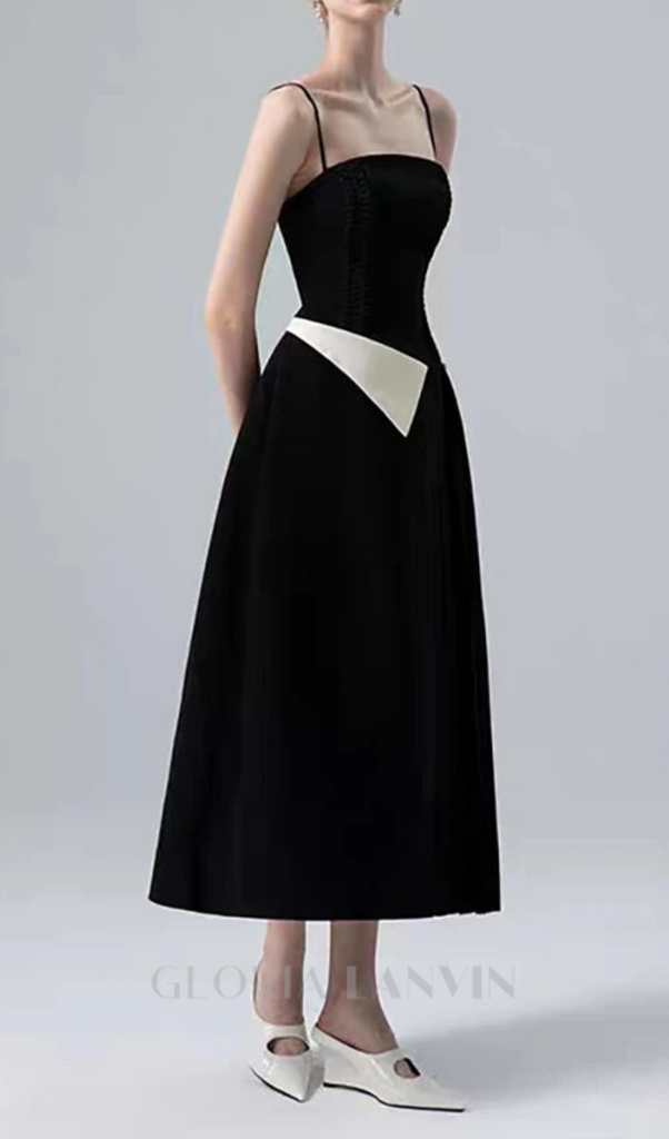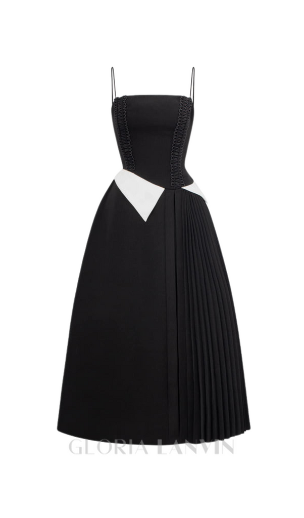 Robe midi contrastée noire à enfiler – Gloria Lanvin