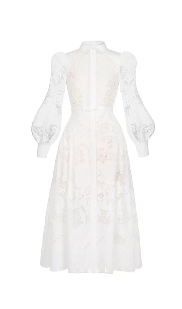 Cette superbe robe midi fera une déclaration en toute occasion. Confectionné en dentelle blanche exquise, il est orné de broderies complexes et terminé par un ourlet complet. Parfait pour un look classique et intemporel.