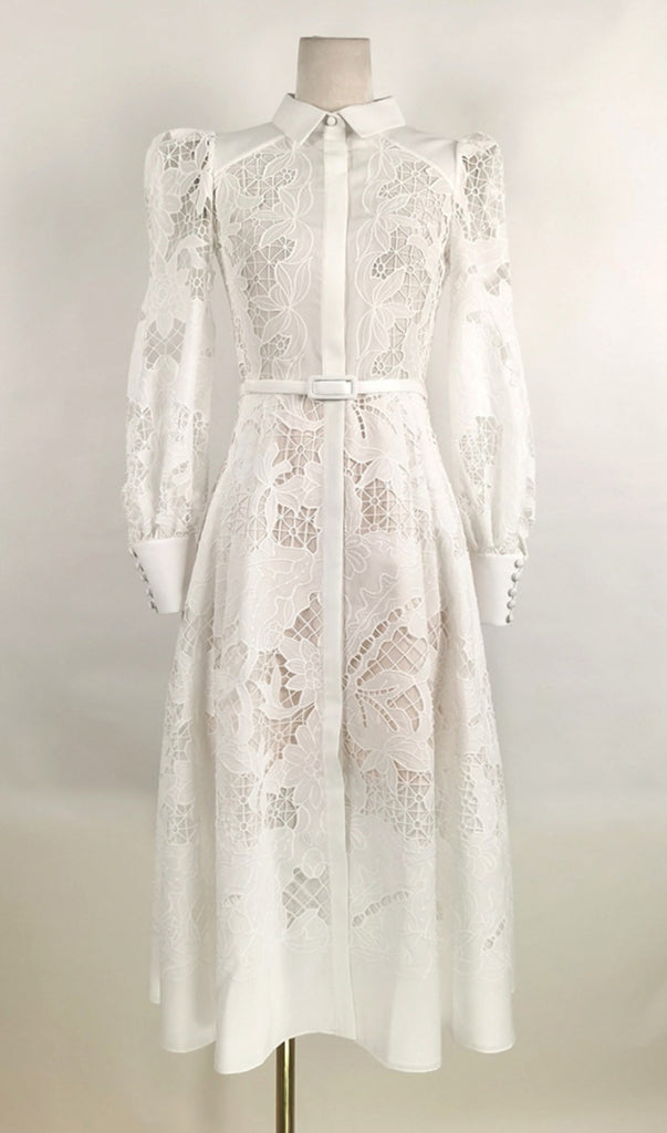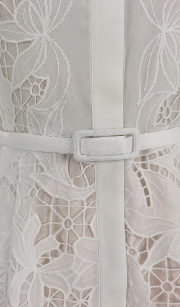 ROBE MIDI À OURLET PLEIN BRODÉE EN DENTELLE BLANCHE – Gloria Lanvin