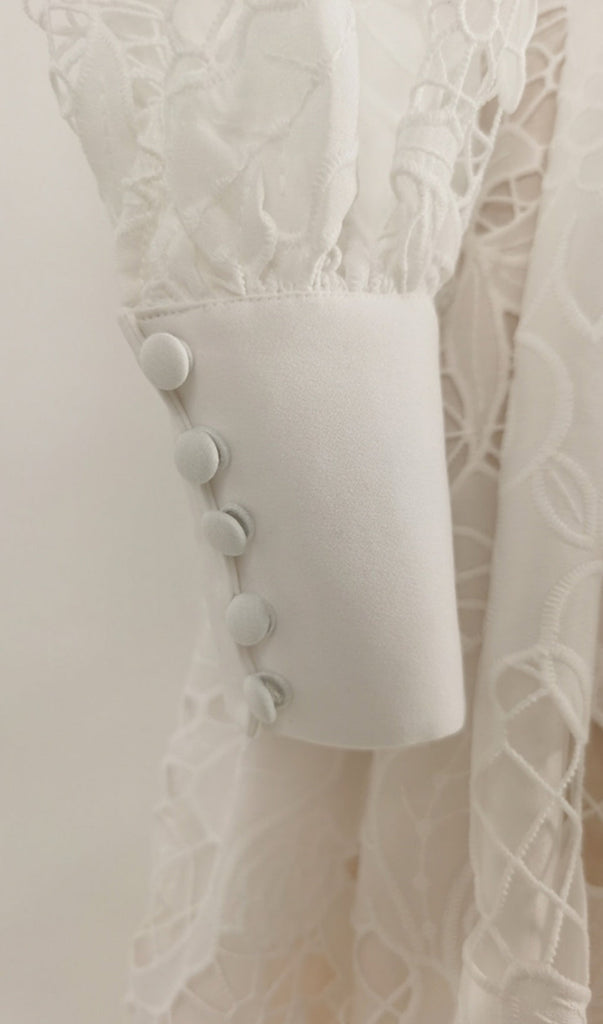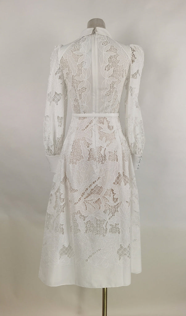 ROBE MIDI À OURLET PLEIN BRODÉE EN DENTELLE BLANCHE